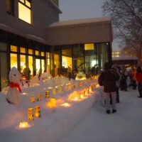 里塚・美しが丘地区センター(清田区里塚2条5丁目)で1月24日(土)、スノーキャンドルフェスタが開催され、150個の紙袋ランタンの灯りが同地区センターを飾りました。 地区センターでは、毎年1月に「スノーキャンドルフェ …