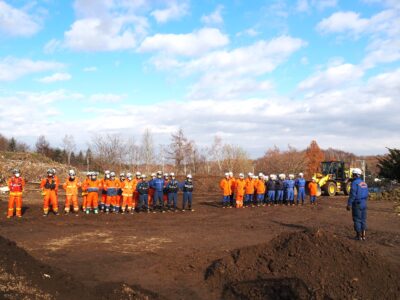 清田消防署と清田消防団は11月23日(日)、合同で「土砂災害対応訓練」を清田区真栄487番地の真栄造園敷地内で行いました。