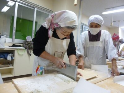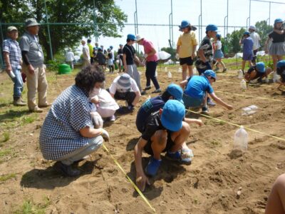 ホタルの折り紙作り、スマホの活用講座、健康体操、人気のそば打ち体験、科学実験、清田区の歴史講座など様々な授業のほか、三里塚小学校児童との交流もたくさんありました。学校の畑で児童たちと一緒に畑仕事をして、枝豆も収穫しました。