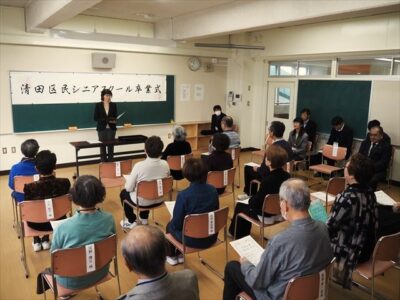60歳以上の清田区民を対象にした清田区民シニアスクールの卒業式が11月26日(水)、三里塚小学校で行われました。17期生の16名が卒業しました。
