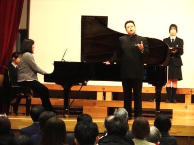 合唱部顧問の江川佳郎先生のオペラ・ソロは、大変な声量で圧巻でした。江川先生は、高校の先生の傍ら、声楽家(テノール歌手)としても活躍されています。