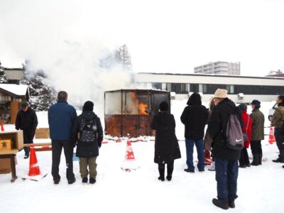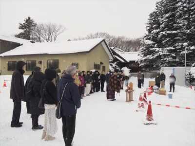 日本の伝統行事「どんど焼き」が1月15日(木)、厚別(あしりべつ)神社(札幌市清田区平岡2条1丁目)境内の駐車場の一角で行われわれました。