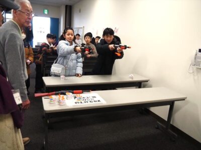 ゲームコーナーでは、射的や輪投げなどに子供たちが夢中になっていました。