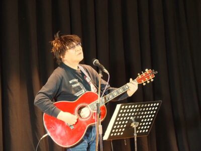 スパシャルゲストの工藤さんは、ギターの弾き語りで「白い冬」など4曲を歌いました。70歳を過ぎているとは思えない美しい声と声量で、アンコールに応えて歌った「見上げてごらん夜の星を」は、最後にアカペラで歌いあげました。