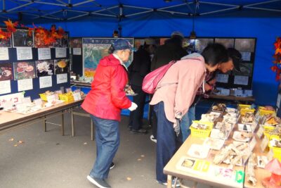 会場の一角では、札幌キノコの会第6支部による恒例のキノコ展も行われ、秋の自然を感じさせてくれました。こちらは大人に人気でした。