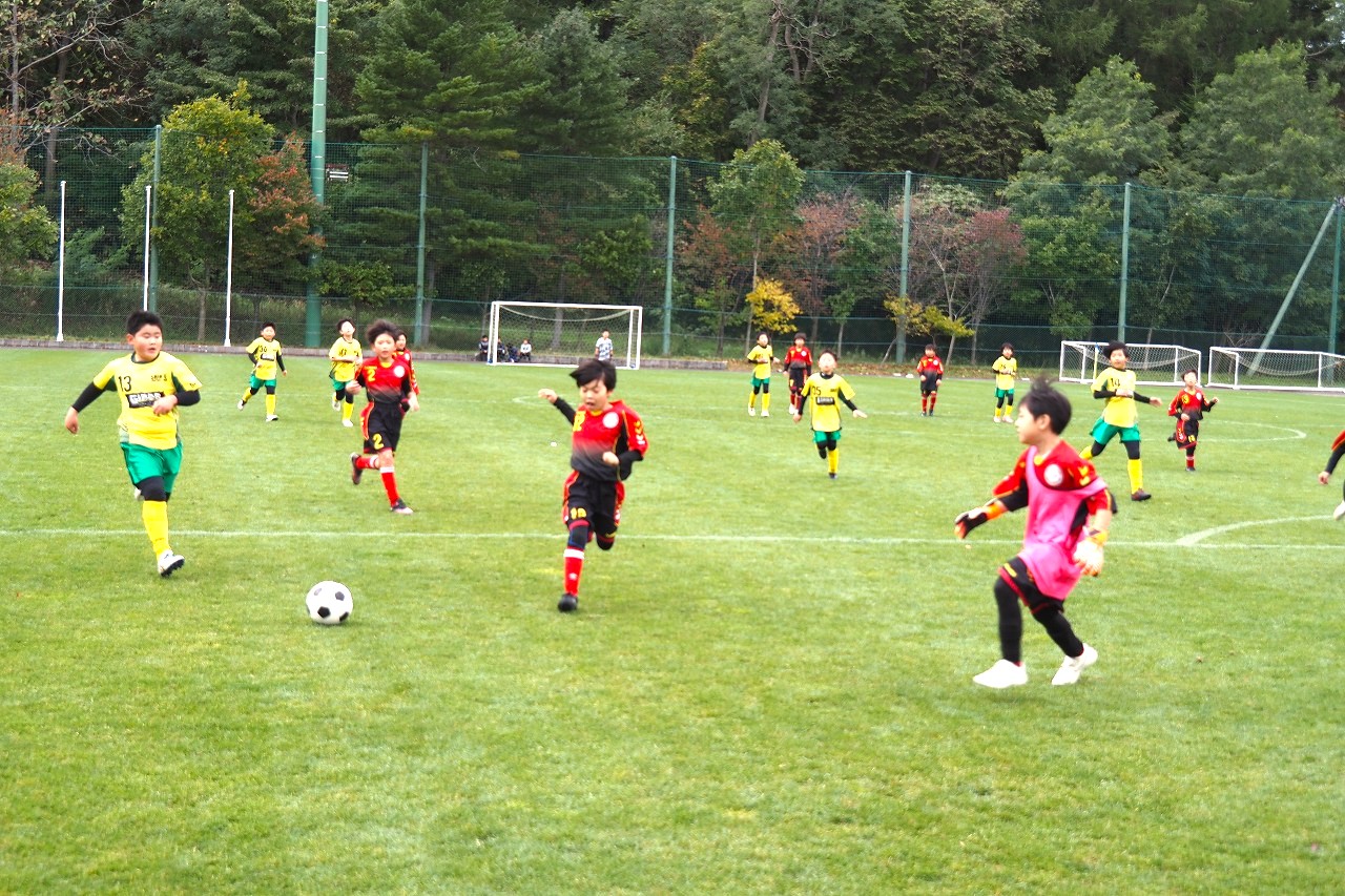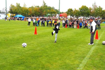その隣では、ミニサッカー大会が行われ、清田区内のサッカー少年団の選手たちがボールを追いかけ、元気に走り回りました。