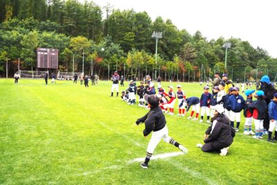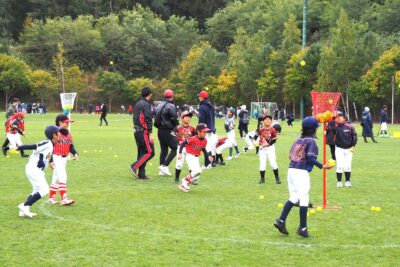 また、少年野球記録会が行われ、玉入れや遠投、23m走、サバイバルノックなどに野球少年たちが元気に挑戦しました。