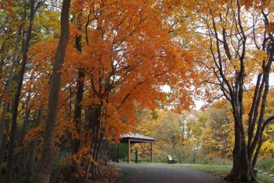 錦秋の華やかさと、晩秋の寂しさを漂わせる平岡公園です。