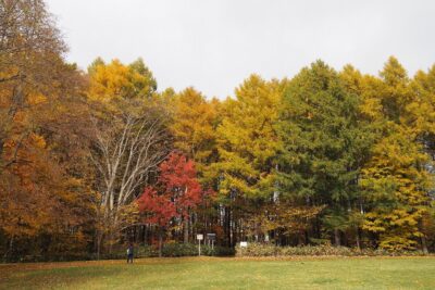 真栄東公園はカラマツを主体にした樹林と少年野球場や遊具などからなる住宅街(真栄団地)に囲まれた公園です。面積は18800㎡あるそうです。